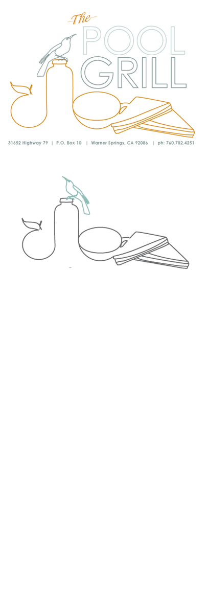 Menu and branding for the 'Pool Grill' and rebranding for 'Smiling Waters Cafe'. At Warner Springs Ranch Resort and Spa.
